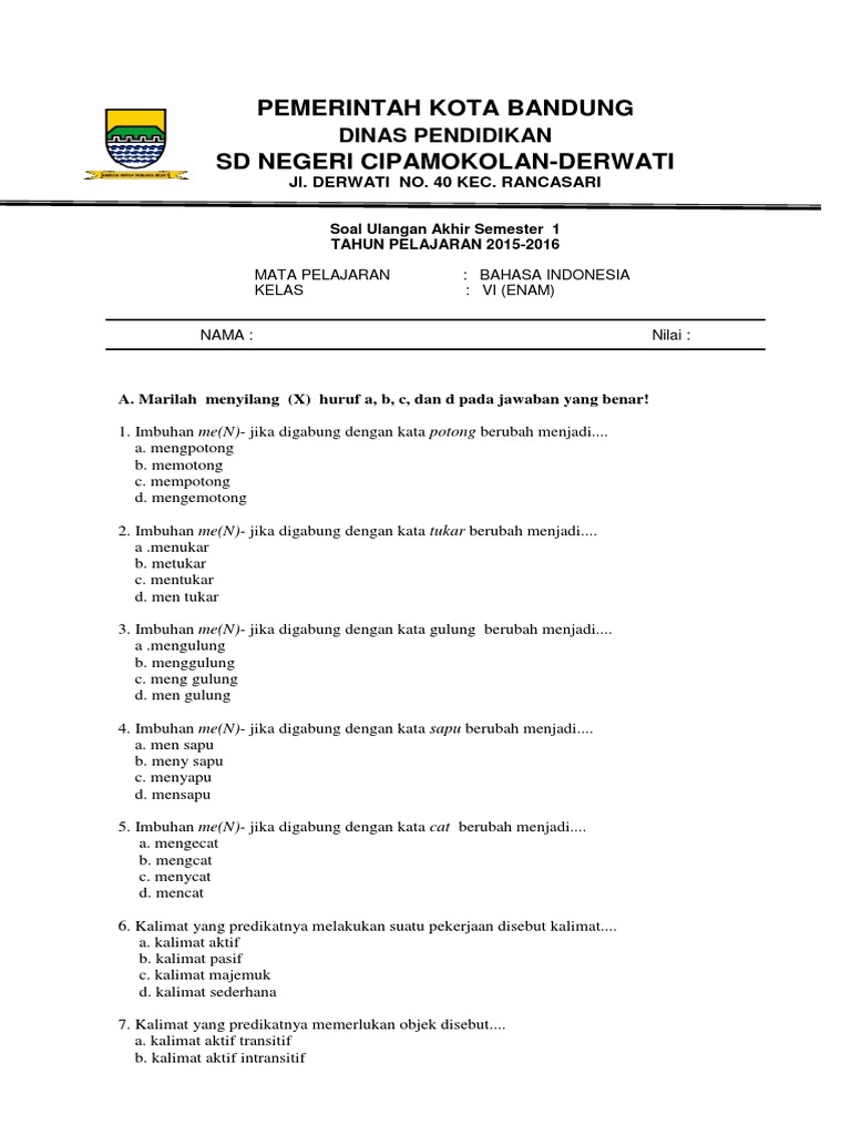 Soal imbuhan kelas 6 bahasa indonesia. Latihan Soal dan Pembahasan Unknown 2016-11-18T214000-0800 50 stars based on 35 reviews 1. Dan kami juga menyediakan file dokument soal-soal ini di akhir artikel yang bisa anda download. Sambil menyelam minum air 2.